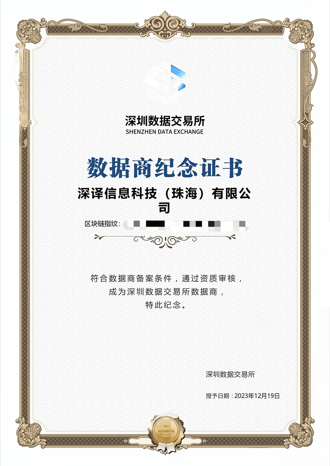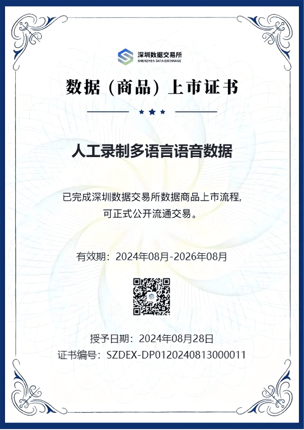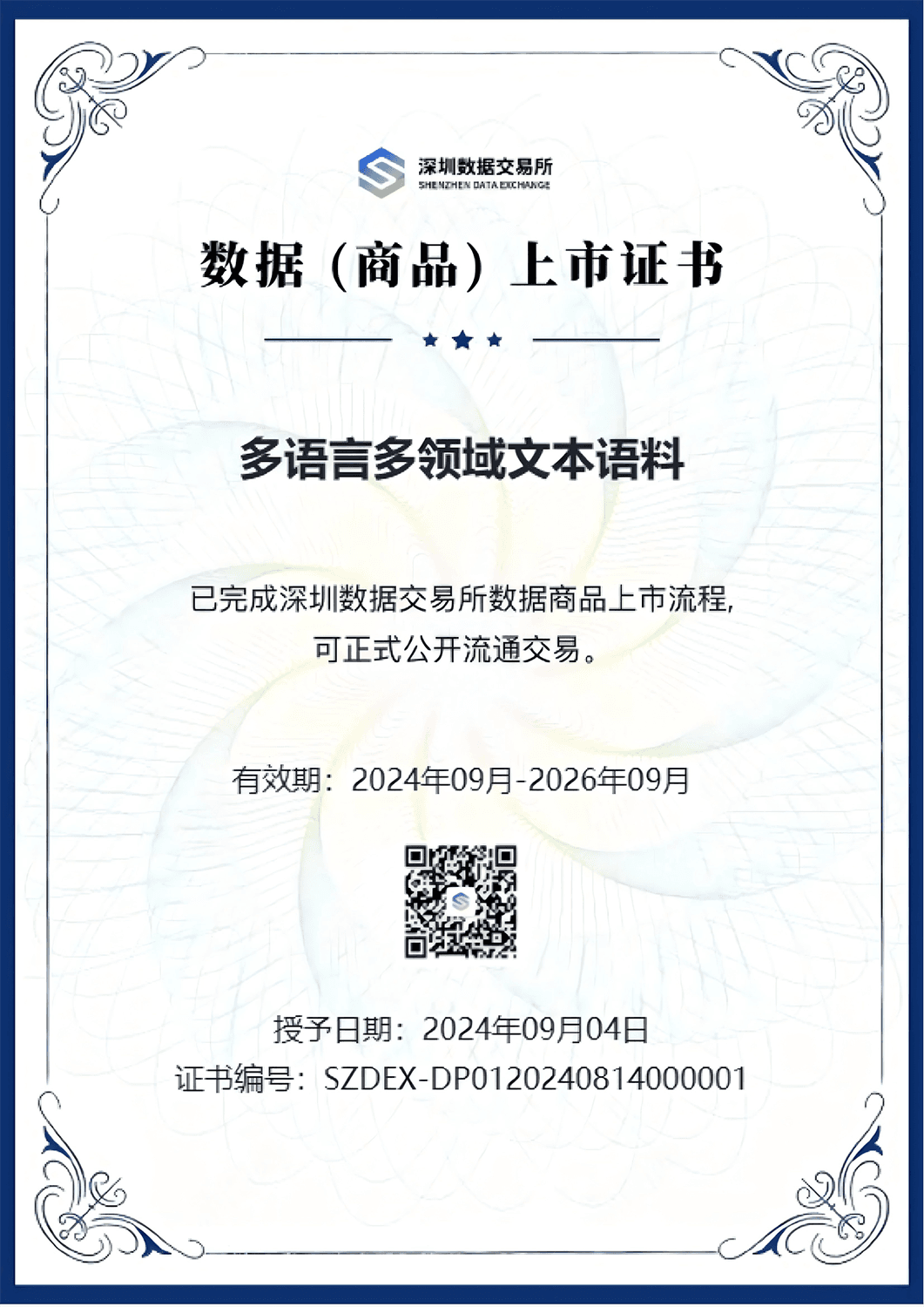 数据上市证书