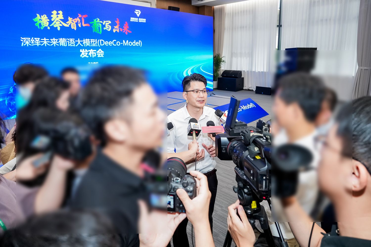 2025年5月8日,“横琴智汇,葡写未来”——深绎未来葡语大模型DeeCo-Model发布会在横琴粤澳深度合作区举行。省委横琴工委副书记、省横琴办主任、横琴粤澳深度合作区执委会副主任聂新平等领导出席发布会,与来自粤港澳大湾区及澳门的政企代表、专家学者共同见证这一具有里程碑意义的时刻。